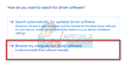 Seleccione la segunda opción »Buscar software de controlador en mi computadora«. Ahora navegue hasta el lugar donde descargó el paquete del controlador e instálelo.
