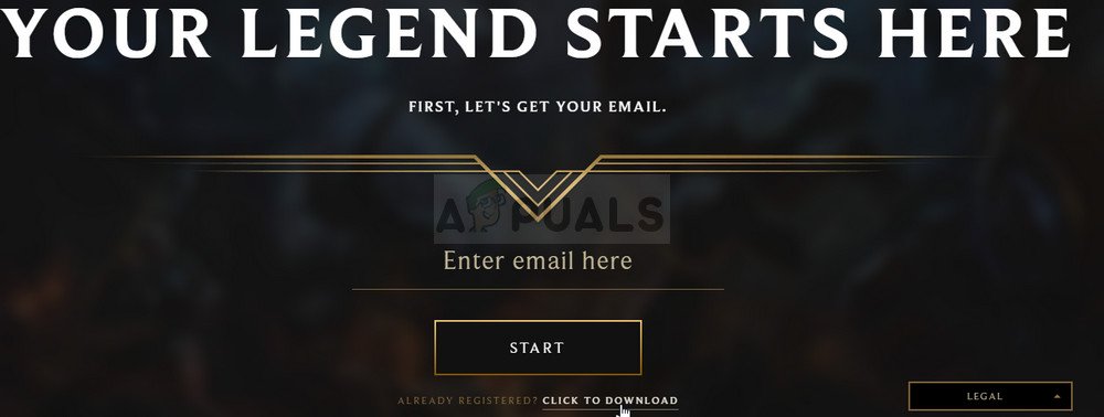 Abra League of Legends haciendo doble clic en su lanzador, esperando a que busque nuevas actualizaciones de juegos o clientes y haciendo clic en el botón de inicio en la parte superior del lanzador.